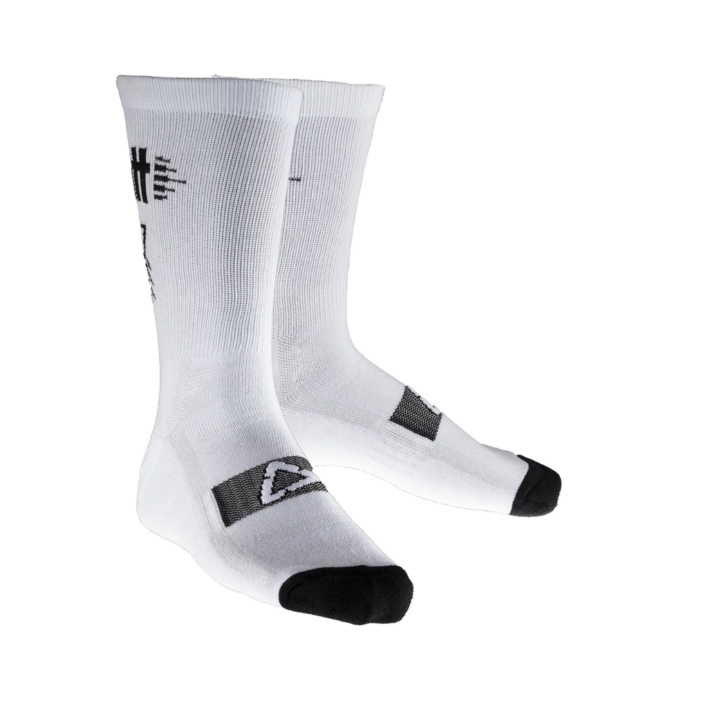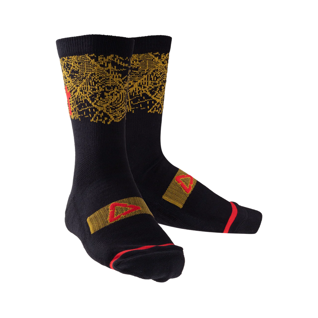 Our 6” long MTB socks use COOLMAX®, a material that absorbs and wicks moisture to the outside of the fabric so it can evaporate quickly and keep you cooler and dry, they are lightweight, and the ankle is reinforced to provide extra protection.